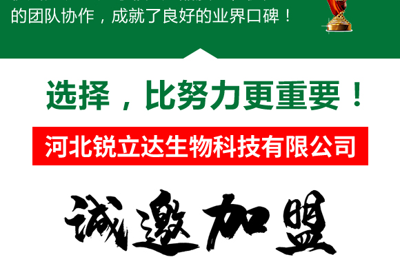 河北銳立達(dá)生物科技有限公司是一家集農(nóng)業(yè)科研、推廣、銷售于一體的高科技技術(shù)企業(yè),致力于,綠色環(huán)保的殺蟲劑、殺螨劑、殺菌劑的研發(fā)與推廣,以成為受人尊敬的農(nóng)資服務(wù)企業(yè)為目標(biāo),堅守承諾、精益求精,研發(fā)提供讓農(nóng)民朋友放心的農(nóng)資產(chǎn)品,提供服務(wù)。河北銳立達(dá)生物科技有限公司擁有業(yè)內(nèi)權(quán)威專家、教授和經(jīng)驗豐富的營銷團隊。堅持誠實做人、守信