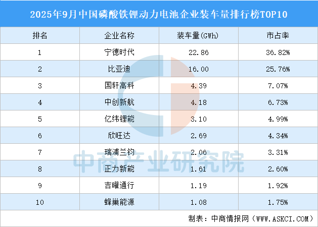 中商情報網(wǎng)訊:9月,我國磷酸鐵鋰動力電池裝車量62.2GWh,環(huán)比增長20.5%,同比增長50.4%。TOP10企業(yè)磷酸鐵鋰動力電池裝車量合計59.16GWh,市占率合計95.29%。