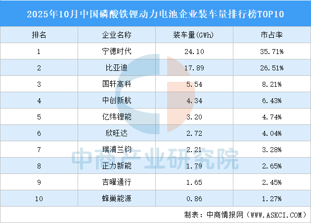 2025年10月中國動力電池企業(yè)裝車量排行榜TOP10(附榜單)