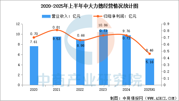 2025年上半年,中大力德的營業(yè)總收入達(dá)到5.16億元,同比上升2.08%,歸母凈利潤為4637.15萬元,同比上升6.5%。上半年,公司精密減速器收入1.156億元,占比22.41%。