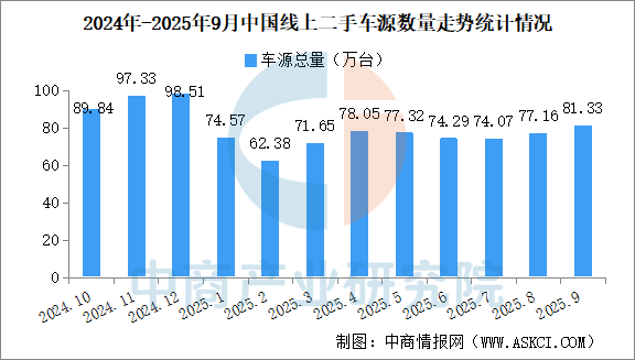 中商情報(bào)網(wǎng)訊:2025年9月,中國(guó)線上二手車源量81.33萬(wàn)臺(tái),車源量環(huán)比、同比都實(shí)現(xiàn)增長(zhǎng)。盡管車源量增長(zhǎng),但與預(yù)期中的旺季行情仍有差距。