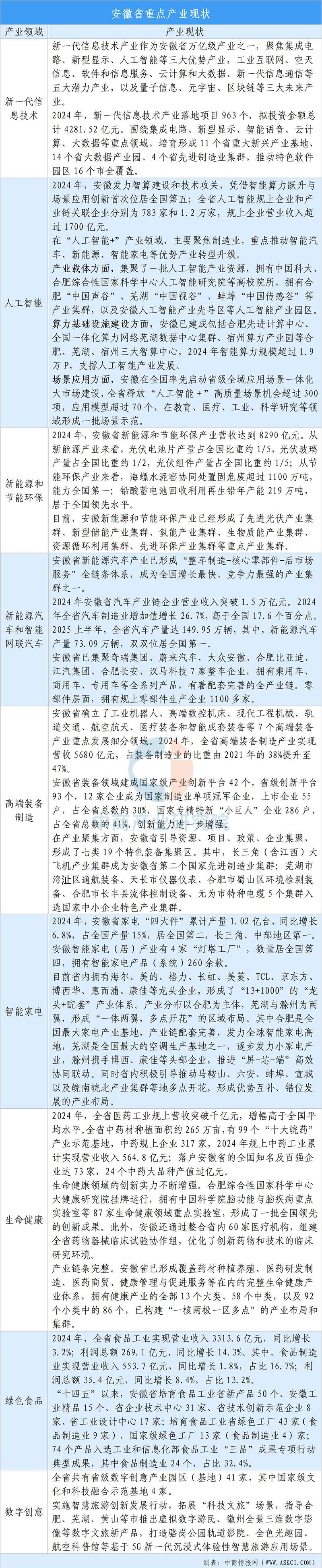 二、安徽省重點(diǎn)產(chǎn)業(yè)布局