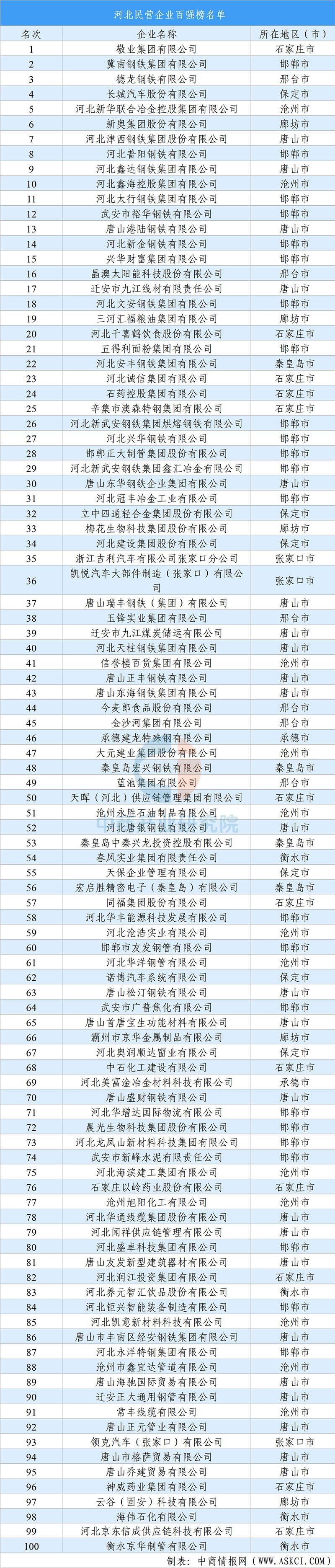 2025年9月,中國(guó)企業(yè)聯(lián)合會(huì)、中國(guó)企業(yè)家協(xié)會(huì)連續(xù)第24次發(fā)布“中國(guó)企業(yè)500強(qiáng)”榜單。該榜單以2024年企業(yè)營(yíng)業(yè)收入為入圍標(biāo)準(zhǔn),河北省共有23家企業(yè)上榜。其中,河鋼集團(tuán)有限公司以4020.63億元的營(yíng)業(yè)收入位列全國(guó)第66名,敬業(yè)集團(tuán)有限公司以3685.69億元營(yíng)收排名第74位,較上年提升7個(gè)名次,兩家企業(yè)均躋身前100強(qiáng)。