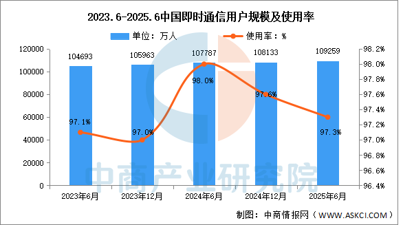 中商情報網(wǎng)訊:截至2025年6月,我國即時通信用戶規(guī)模達10.93億人,較2024年12月增長1127萬人,占網(wǎng)民整體的97.3%。