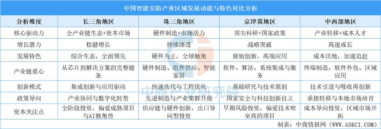 中商情報網(wǎng)訊:中國的智能安防產(chǎn)業(yè)已形成高度區(qū)域化的競爭格局,主要集聚于長三角地區(qū)、珠三角地區(qū)、京津冀地區(qū)三大核心經(jīng)濟(jì)圈,而中西部地區(qū)作為新興力量,正憑借其獨(dú)特的優(yōu)勢快速崛起。