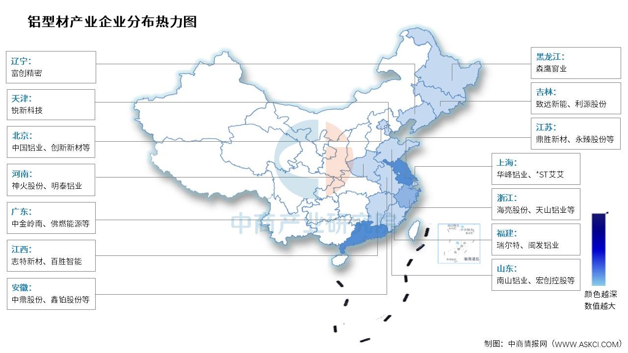 目前,中國鋁型材A股相關(guān)上市企業(yè)主要分布在廣東省和江蘇省,均為11家。浙江省共有5家,排名第三。
