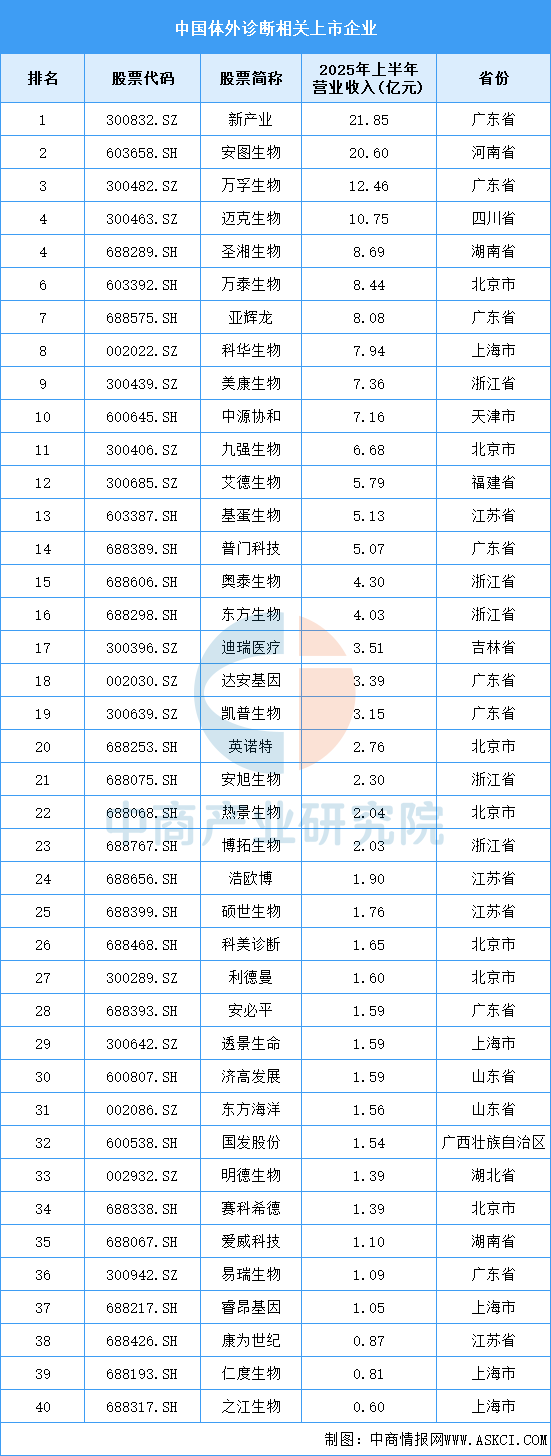 目前,A股上市體外診斷相關(guān)企業(yè),廣東省數(shù)量最多,共8家。北京市共7家,排名第二。上海市和浙江省均為5家,并列第三。