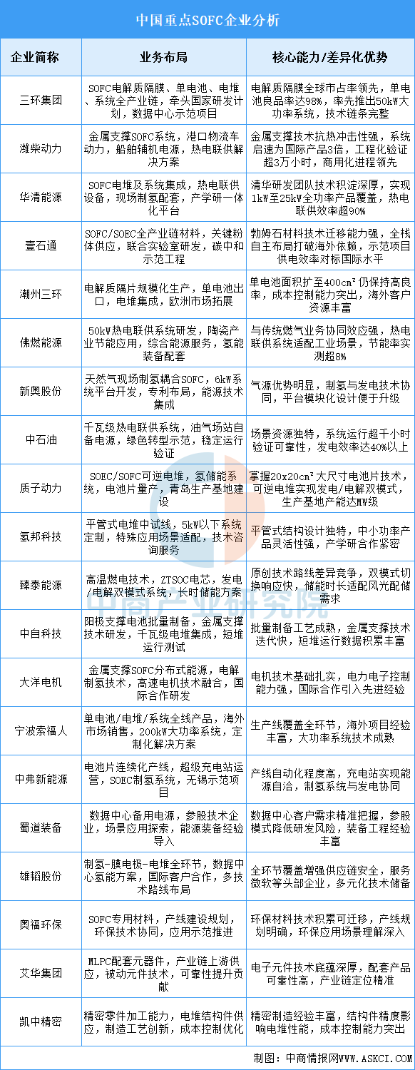中商情報網(wǎng)訊:行業(yè)正經(jīng)歷從技術(shù)示范向規(guī)?;虡I(yè)應(yīng)用的關(guān)鍵轉(zhuǎn)型,技術(shù)競爭聚焦金屬支撐、電解質(zhì)材料及系統(tǒng)集成效率,應(yīng)用場景從分布式發(fā)電向數(shù)據(jù)中心、船舶動力等高端領(lǐng)域加速拓展。三環(huán)集團以電解質(zhì)隔膜技術(shù)主導(dǎo)全球材料市場;濰柴動力借金屬支撐系統(tǒng)突破引領(lǐng)商業(yè)化應(yīng)用;華清能源依托清華研發(fā)背景實現(xiàn)全鏈條技術(shù)貫通。