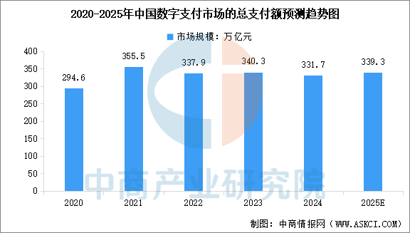中商產(chǎn)業(yè)研究院發(fā)布的《2025-2030年全球支付行業(yè)市場調(diào)研及投資前景預(yù)測報(bào)告》顯示,中國的數(shù)字支付市場近年來穩(wěn)步增長,從2020年的294.6萬億元增至2024年的331.7萬億元,復(fù)合年增長率為3.0%。未來隨著二維碼支付、聚合收款和數(shù)字人民幣的不斷融合,以及平臺型商戶對統(tǒng)一收單與運(yùn)營解決方案需求的日益增長,到2025年中國數(shù)字支付的總支付額預(yù)計(jì)將達(dá)到339.3萬億元。