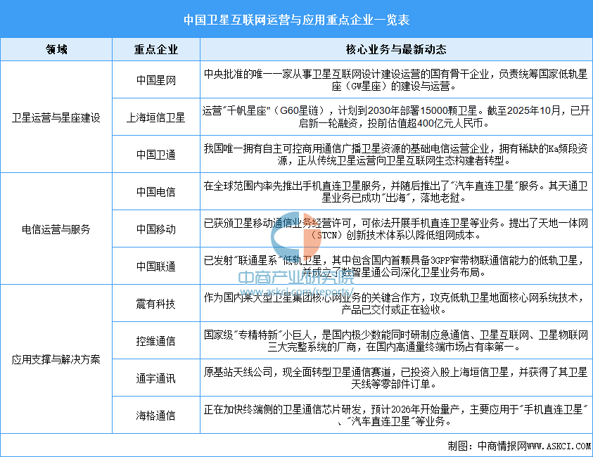 5.衛(wèi)星互聯(lián)網(wǎng)重點(diǎn)企業(yè)一覽表