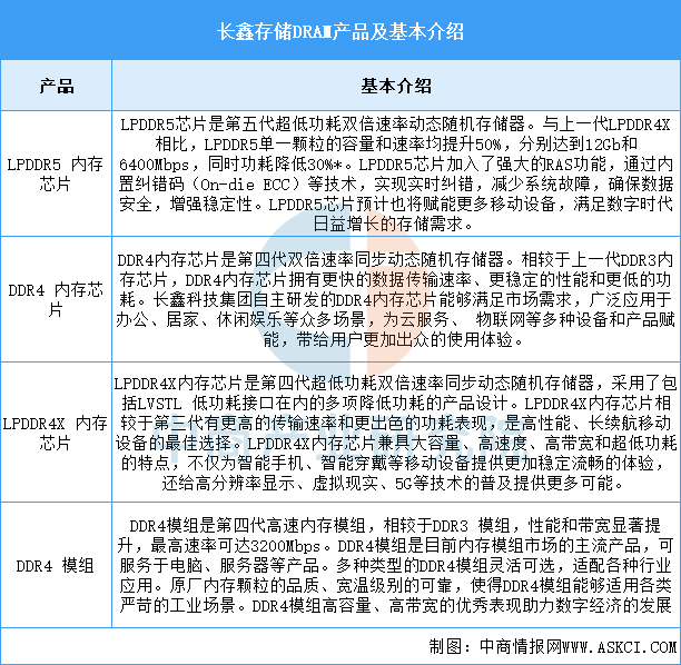 目前,長(zhǎng)鑫存儲(chǔ)主要DRAM產(chǎn)品包括LPDDR5內(nèi)存芯片、DDR4內(nèi)存芯片、LPDDR4X內(nèi)存芯片、DDR4模組。
