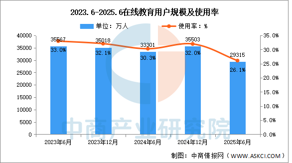 中商情報(bào)網(wǎng)訊:截至2025年6月,我國(guó)在線教育用戶(hù)規(guī)模達(dá)2.93億人,占網(wǎng)民整體的26.1%。