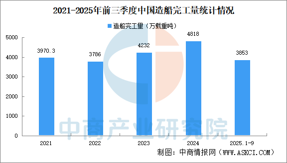 中商情報(bào)網(wǎng)訊:2025年1-9月,我國(guó)造船完工量3853萬載重噸,同比增長(zhǎng)6.0%;新接訂單量6660萬載重噸,同比下降23.5%;截至9月底,手持訂單量24224萬載重噸,同比增長(zhǎng)25.3%。1—9月,我國(guó)造船三大指標(biāo)以載重噸計(jì)分別占世界總量的53.8%、67.3%和65.2%,以修正總噸計(jì)分別占47.3%,63.5%和58.6%,繼續(xù)保持全球領(lǐng)先。