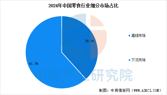 消費水平的提升與基礎(chǔ)設(shè)施的完善,標(biāo)志著下沉市場的市場結(jié)構(gòu)日趨成熟且未來增長潛力巨大。中商產(chǎn)業(yè)研究院發(fā)布的《2025-2030年中國食品行業(yè)發(fā)展研究報告》顯示,中國零食市場正在加速向下沉市場滲透發(fā)展,2024年零食在下沉市場GMV已達(dá)到5754億元,占比61.7%。下沉市場增速領(lǐng)跑高線市場,未來預(yù)期仍將保持強(qiáng)勁增長。