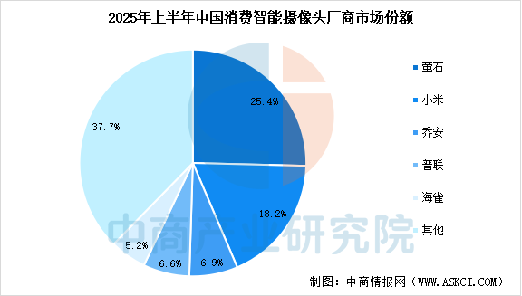 我國智能攝像頭市場集中度提升,頭部效應(yīng)加劇。中商產(chǎn)業(yè)研究院發(fā)布的《2025-2030年中國智能攝像頭市場調(diào)查與行業(yè)前景預(yù)測專題研究報告》顯示,螢石以25.4%的市場份額穩(wěn)居榜首;小米市場份額提升4.3個百分點(diǎn)至18.2%;喬安市場份額為6.9%,在150元以下價格段份額超過20%;普聯(lián)和海雀市場份額分別為6.6%和5.2%。