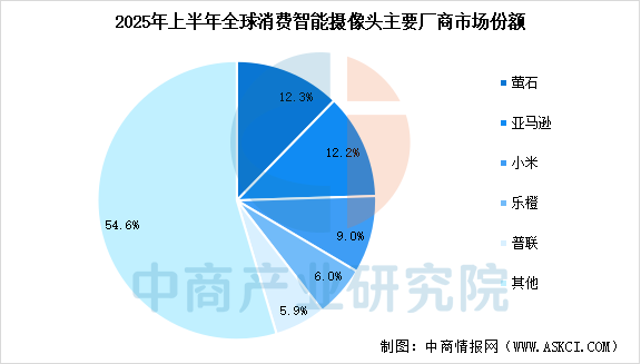 全球智能攝像頭市場競爭加劇。中商產(chǎn)業(yè)研究院發(fā)布的《2025-2030年中國智能攝像頭市場調(diào)查與行業(yè)前景預(yù)測專題研究報告》顯示,2025年上半年,全球前五大消費(fèi)級攝像頭品牌中,中國品牌占據(jù)四家,分別是螢石、小米、大華樂橙和普聯(lián)。其中螢石市場份額為12.3%,穩(wěn)居全球榜首。亞馬遜占比12.2%。小米、樂橙和普聯(lián)分別占比9.0%、6.0%和5.9%。