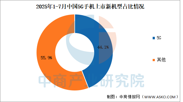 2025年1-7月,5G手機上市新機型126款,同比下降5.3%,占同期手機上市新機型數(shù)量的44.1%。