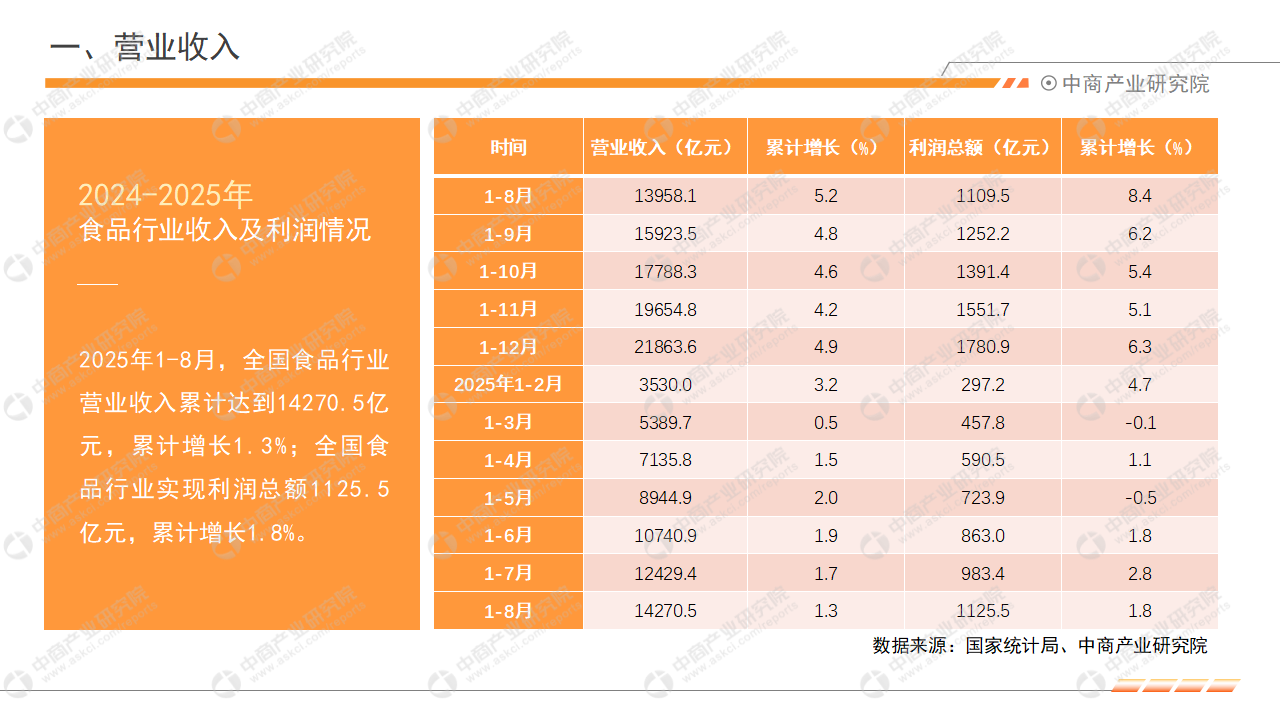 2025年1-8月,全國(guó)食品行業(yè)營(yíng)業(yè)成本為11212.1億元,累計(jì)增長(zhǎng)1.7%;銷售費(fèi)用為1164.1億元,累計(jì)下降3.3%;管理費(fèi)用達(dá)634.4億元,累計(jì)增長(zhǎng)3.0%;財(cái)務(wù)費(fèi)用51.7億元,累計(jì)增長(zhǎng)7.5%。