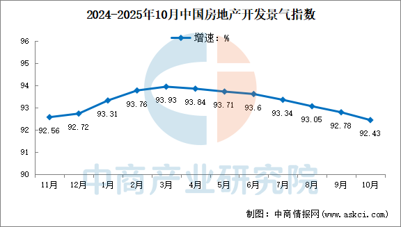 10月份,房地產(chǎn)開(kāi)發(fā)景氣指數(shù)(簡(jiǎn)稱(chēng)“國(guó)房景氣指數(shù)”)為92.43。