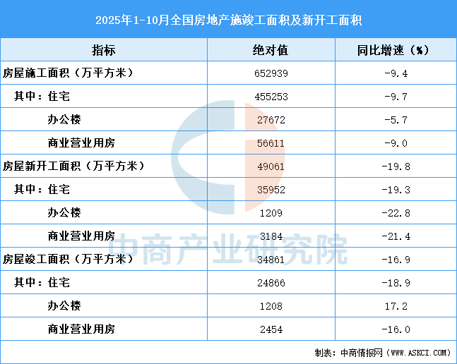1—10月份,房地產(chǎn)開(kāi)發(fā)企業(yè)房屋施工面積652939萬(wàn)平方米,同比下降9.4%。其中,住宅施工面積455253萬(wàn)平方米,下降9.7%。房屋新開(kāi)工面積49061萬(wàn)平方米,下降19.8%。其中,住宅新開(kāi)工面積35952萬(wàn)平方米,下降19.3%。房屋竣工面積34861萬(wàn)平方米,下降16.9%。其中,住宅竣工面積24866萬(wàn)平方米,下降18.9%。