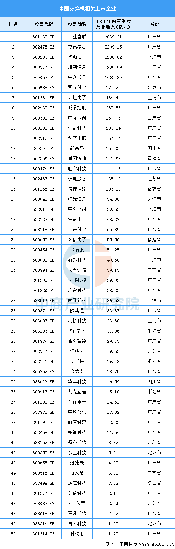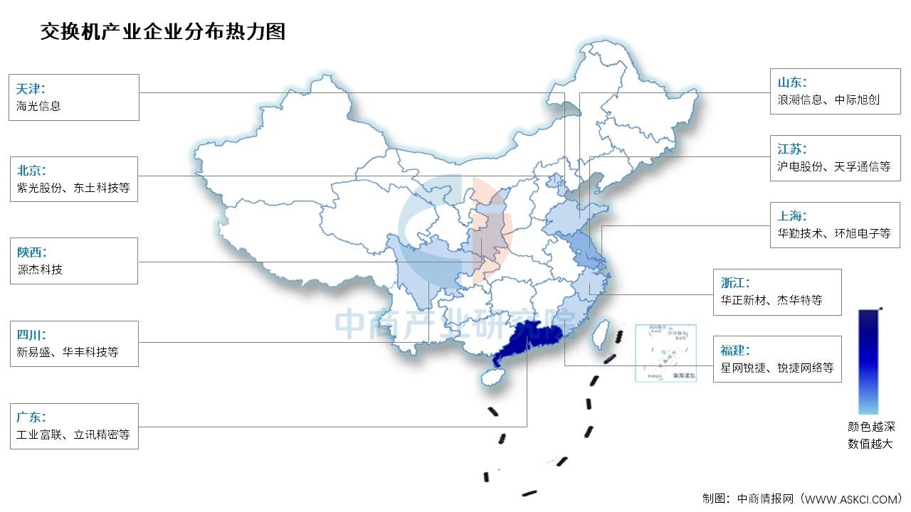 目前,交換機相關A股上市企業(yè)主要分布在廣東省,共23家。江蘇省和上海市均為6家,并列第二。