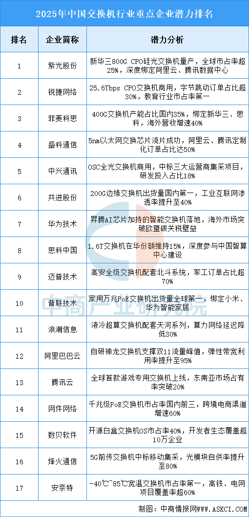 交換機行業(yè)呈現(xiàn)技術代際躍遷、場景垂直深化、國產(chǎn)替代加速三大特征技術端800G/1.6T交換機進入規(guī)模化部署,CPO硅光與液冷散熱推動能效比突破1.2PUE,白盒生態(tài)重構產(chǎn)業(yè)鏈價值分配市場端政務云、智算中心、工業(yè)互聯(lián)網(wǎng)需求激增,2025年邊緣交換機增速超35%,但28nm以下工藝芯片國產(chǎn)化率不足30%制約高端突破政策驅(qū)動下信創(chuàng)替代率突破50%,預計2026年行業(yè)規(guī)模超878億元,具備全棧技術整合能力、綁定頭部客戶、攻克硅光核心工藝的企業(yè)將主導新一輪洗牌。