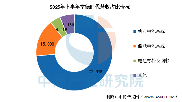 2025年前三季度實(shí)現(xiàn)營(yíng)業(yè)收入2830.72億元,同比增長(zhǎng)9.28%;實(shí)現(xiàn)歸母凈利潤(rùn)490.34億元,同比增長(zhǎng)36.2%。2025年上半年主營(yíng)產(chǎn)品包括動(dòng)力電池系統(tǒng)、儲(chǔ)能電池系統(tǒng)、電池材料及回收,營(yíng)收分別占整體的73.55%、15.88%、4.41%。2025年上半年主營(yíng)產(chǎn)品包括動(dòng)力電池系統(tǒng)、儲(chǔ)能電池系統(tǒng)、電池材料及回收,營(yíng)收分別占整體的73.55%、15.88%、4.41%。
