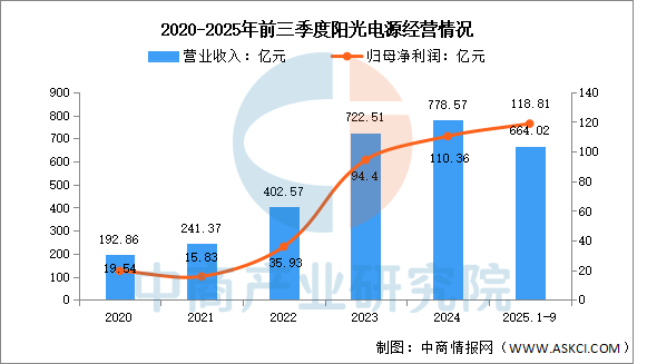 2025年前三季度實(shí)現(xiàn)營(yíng)業(yè)收入664.02億元,同比增長(zhǎng)32.95%;實(shí)現(xiàn)歸母凈利潤(rùn)118.81億元,同比增長(zhǎng)56.33%。2025年上半年主營(yíng)產(chǎn)品包括儲(chǔ)能系統(tǒng)、光伏逆變器等電力電子轉(zhuǎn)換設(shè)備、新能源投資開發(fā),營(yíng)收分別占整體的40.89%、35.21%、19.29%。