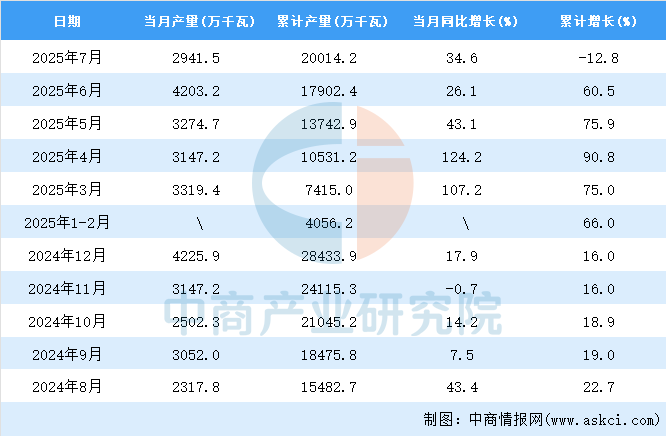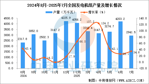 2025年7月全國發(fā)電機(jī)組產(chǎn)量增長情況