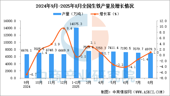 2025年8月全國(guó)生鐵產(chǎn)量增長(zhǎng)情況