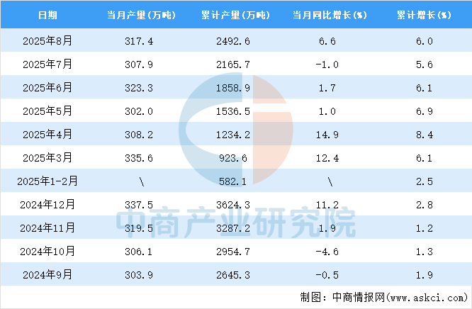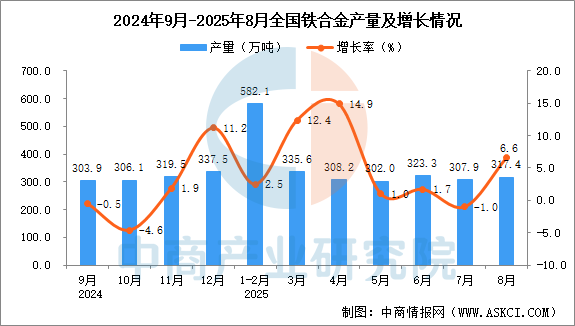 2025年8月全國(guó)鐵合金產(chǎn)量增長(zhǎng)情況