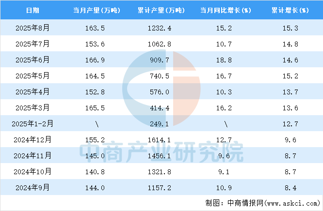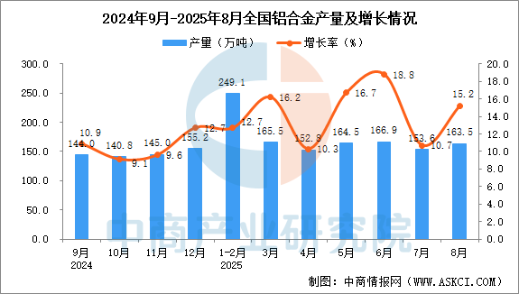 2025年8月全國鋁合金產(chǎn)量增長情況