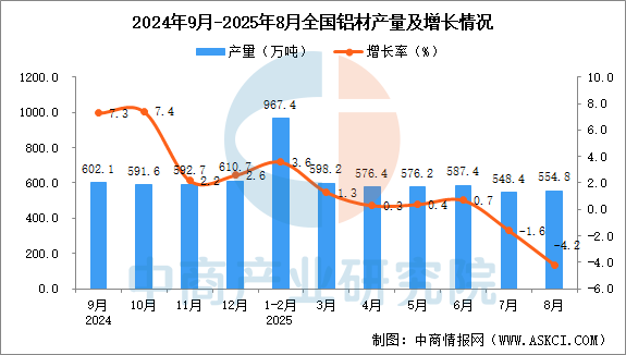 2025年8月全國鋁材產(chǎn)量增長情況