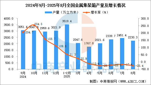 2025年8月全國金屬集裝箱產(chǎn)量增長情況