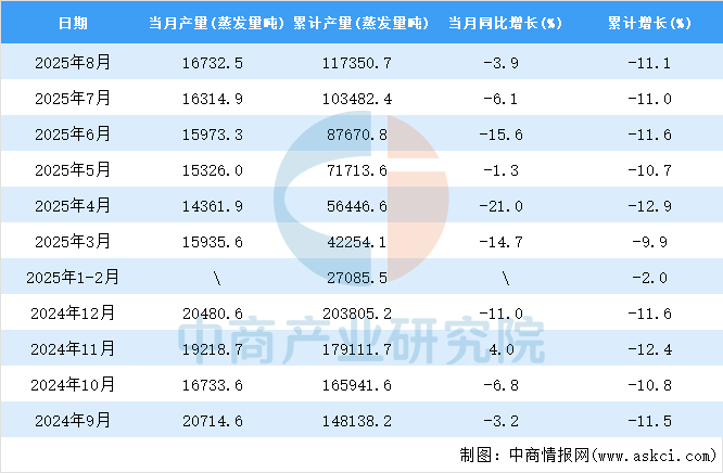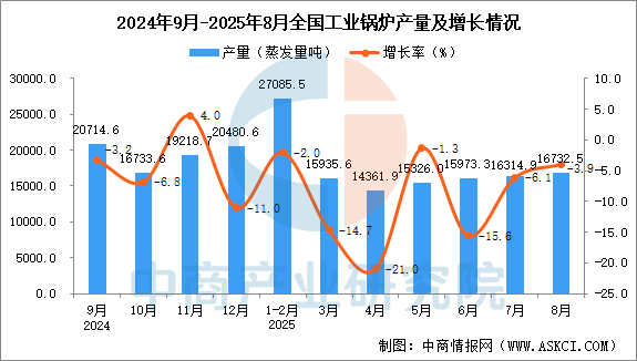2025年8月全國(guó)工業(yè)鍋爐產(chǎn)量增長(zhǎng)情況