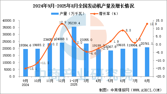 2025年8月全國發(fā)動機(jī)產(chǎn)量增長情況