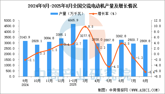 2025年8月全國交流電動機產(chǎn)量數(shù)據(jù)統(tǒng)計分析