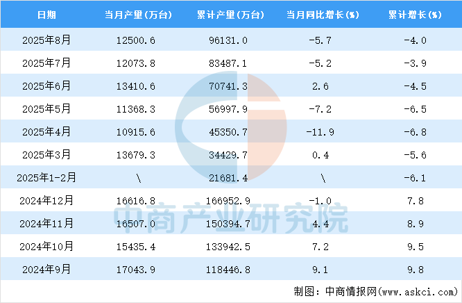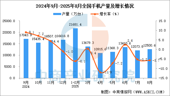 2025年8月全國(guó)手機(jī)產(chǎn)量增長(zhǎng)情況