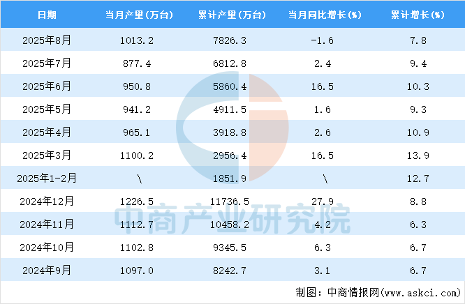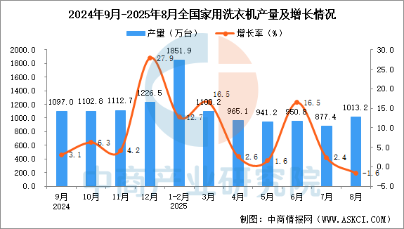2025年8月全國家用洗衣機產(chǎn)量增長情況
