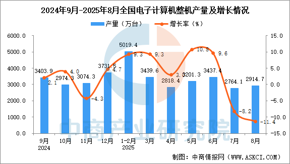 2025年8月全國(guó)電子計(jì)算機(jī)整機(jī)產(chǎn)量數(shù)據(jù)統(tǒng)計(jì)分析