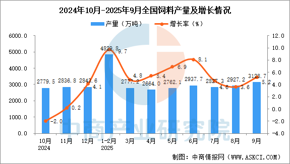 2025年9月全國(guó)飼料產(chǎn)量增長(zhǎng)情況