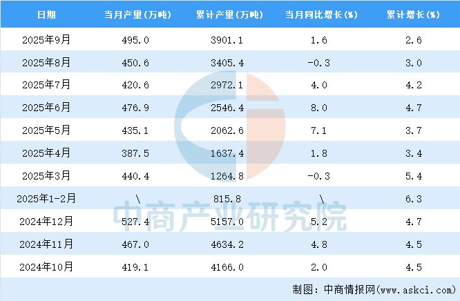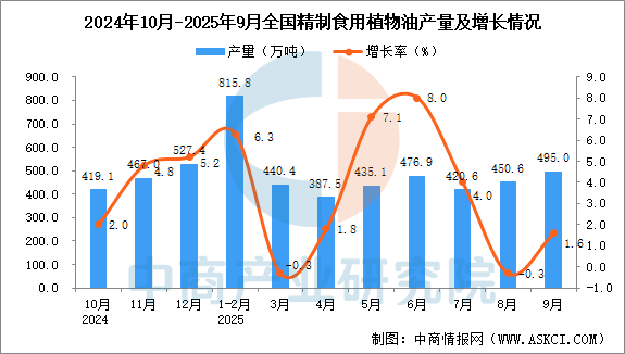 2025年9月全國精制食用植物油產(chǎn)量增長情況