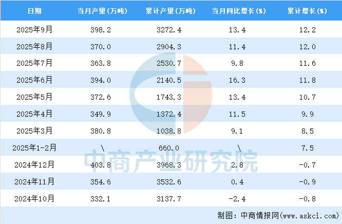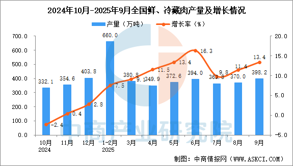 2025年9月全國鮮、冷藏肉產(chǎn)量增長情況