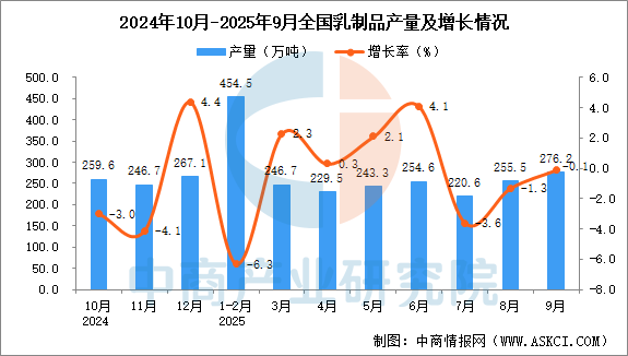 2025年9月全國乳制品產(chǎn)量增長情況