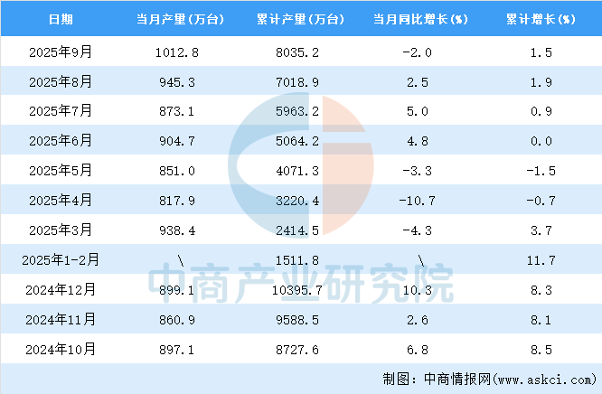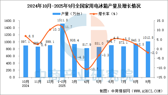2025年9月全國家用電冰箱產(chǎn)量增長情況