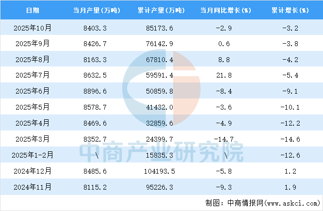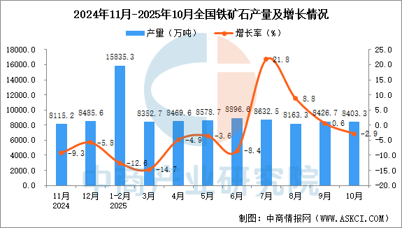 2025年10月全國(guó)鐵礦石產(chǎn)量增長(zhǎng)情況