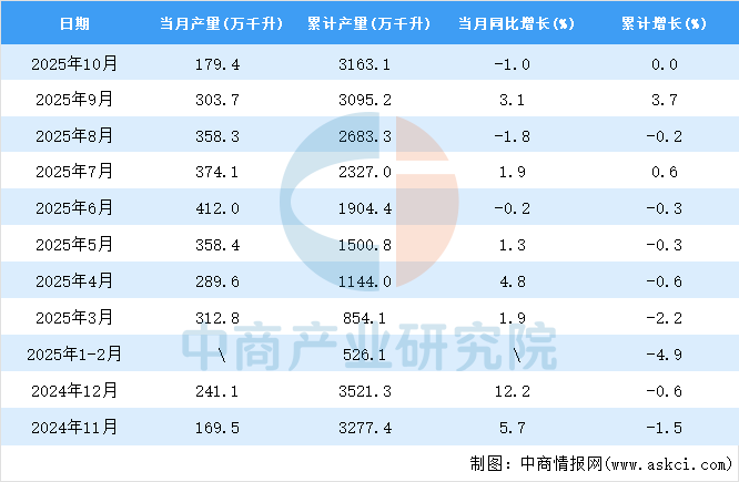 中商情報(bào)網(wǎng)訊:據(jù)中商產(chǎn)業(yè)研究院數(shù)據(jù)庫(kù)顯示,2025年10月全國(guó)啤酒當(dāng)月產(chǎn)量與去年同期相比增長(zhǎng)。2025年10月全國(guó)啤酒產(chǎn)量為179.4萬(wàn)千升,同比下降1.0%。2025年1-10月全國(guó)啤酒產(chǎn)量3163.1萬(wàn)千升,同比持平。