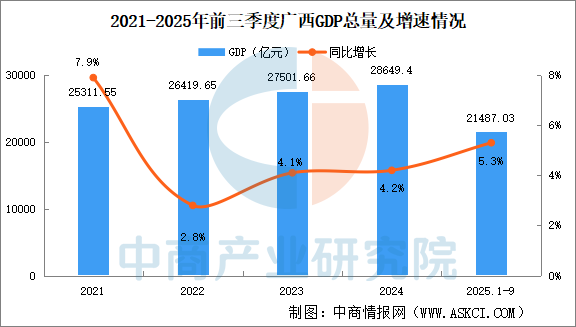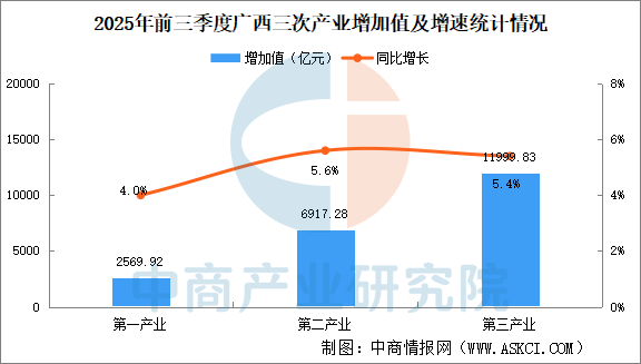 中商情報(bào)網(wǎng)訊:前三季度廣西各項(xiàng)穩(wěn)經(jīng)濟(jì)政策協(xié)同發(fā)力,主要宏觀指標(biāo)總體平穩(wěn),高質(zhì)量發(fā)展取得積極成效。根據(jù)地區(qū)生產(chǎn)總值統(tǒng)一核算結(jié)果,前三季度廣西生產(chǎn)總值21487.03億元,按不變價(jià)格計(jì)算,同比增長(zhǎng)5.3%。分產(chǎn)業(yè)看,第一產(chǎn)業(yè)增加值2569.92億元,增長(zhǎng)4.0%;第二產(chǎn)業(yè)增加值6917.28億元,增長(zhǎng)5.6%;第三產(chǎn)業(yè)增加值11999.83億元,增長(zhǎng)5.4%。