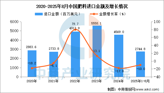 2025年8月中國肥料進(jìn)口量及金額增長情況