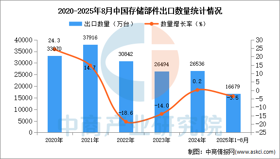 2025年8月中國(guó)自動(dòng)數(shù)據(jù)處理設(shè)備出口量及金額增長(zhǎng)情況